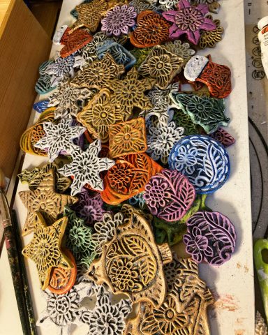 Rock painting, dream catcher making, cardboard mask making, greeting card creating, salt dough ornaments, plastic bottle lanterns, bead making, Easter bonnet design and construction, autumn leaf critters, kid finger butterflies, salt dough and sculpting putty snails with real snail shells, paper mache hot air balloons, found object toy construction, wreath making.