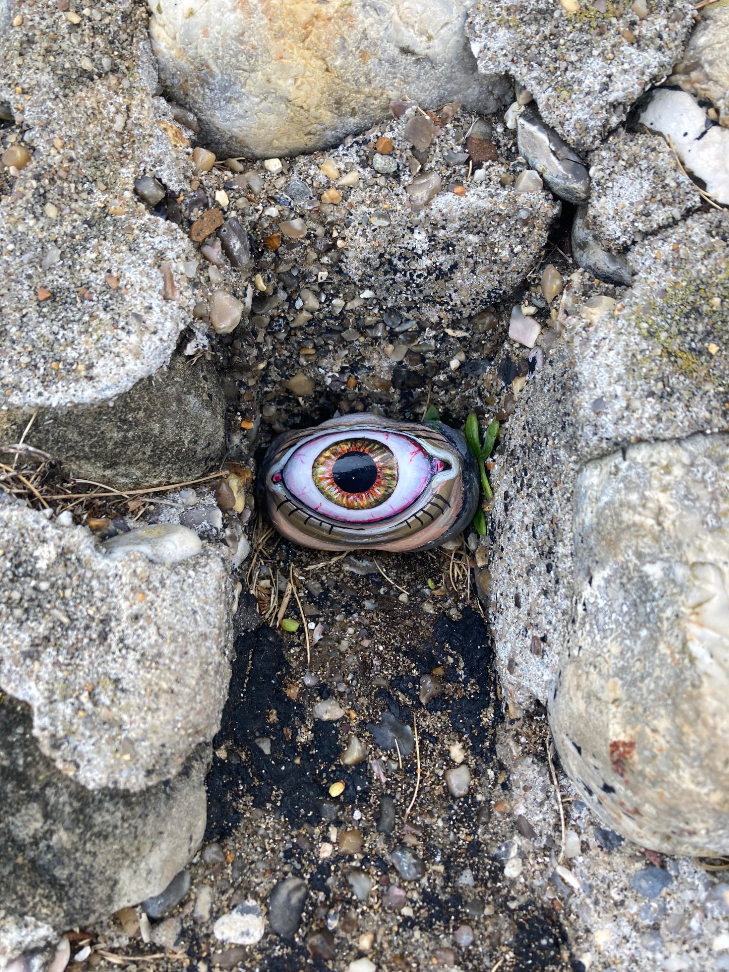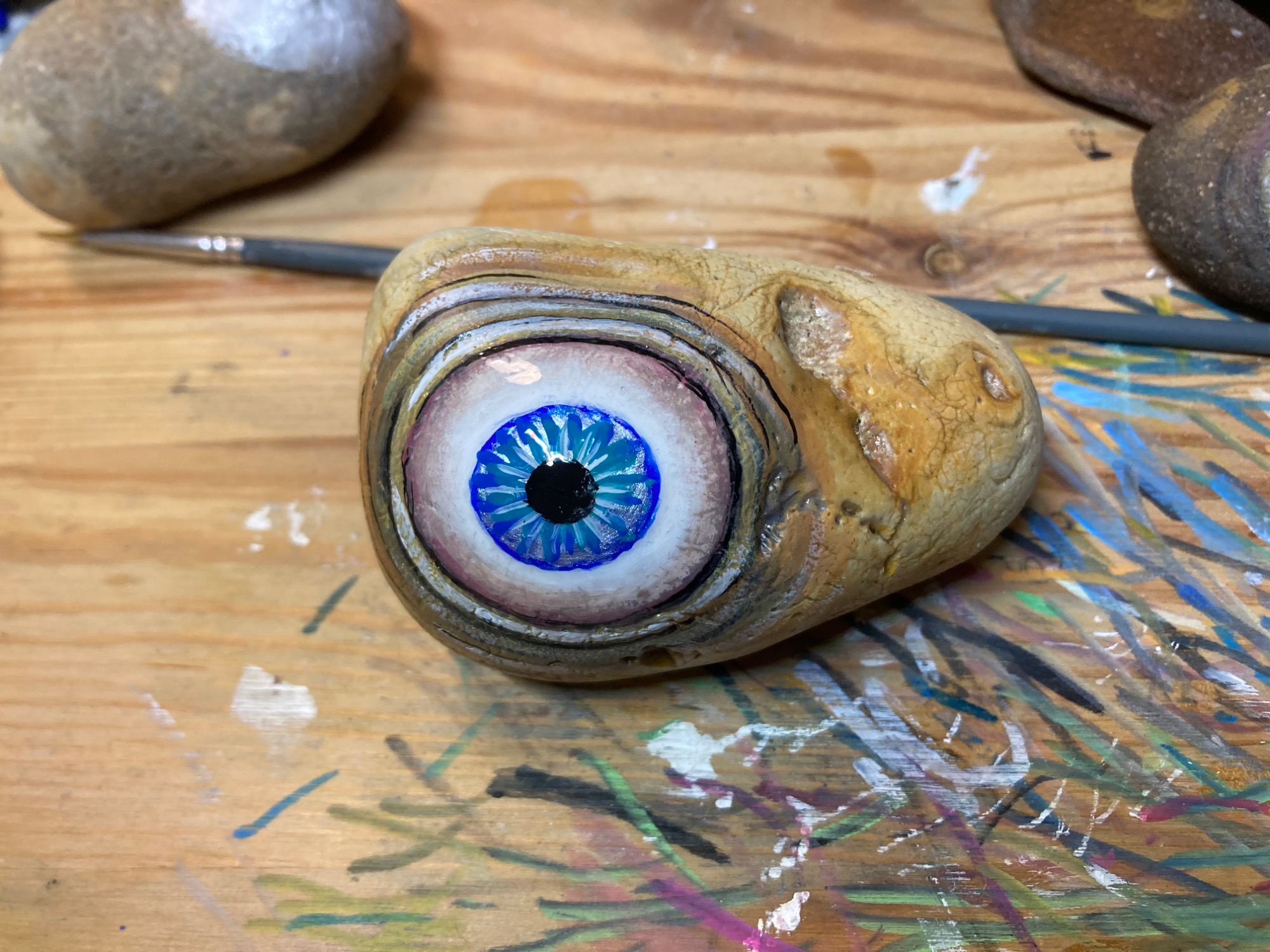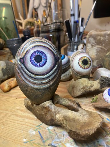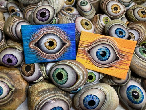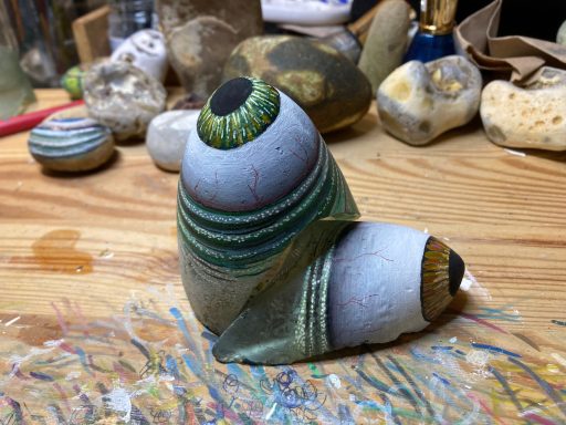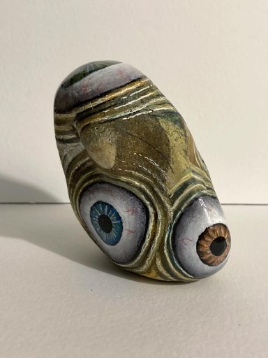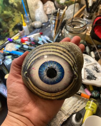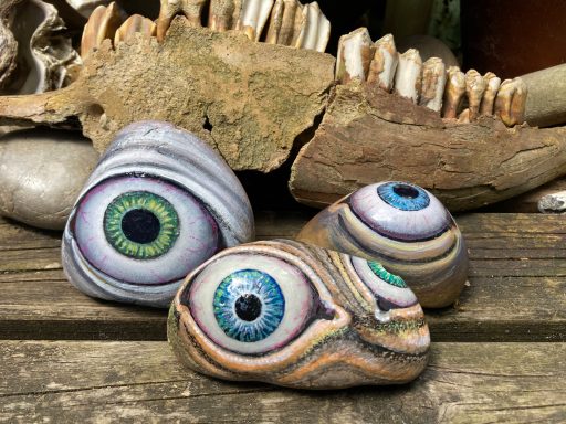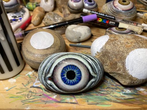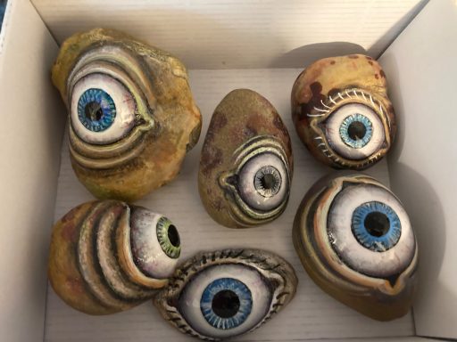 Global project painting eyes on rocks and found objects. Placing those objects around the world into situations and landscapes for people to find and contemplate. Human connection is forged through the eyes via eye contact, a powerful form of non-verbal communication that conveys emotion, fosters empathy, and builds trust. Our eyes on the world; in the rocks, in the objects around us, in the landscapes around us. People can keep, leave, or redistribute the eyes that they find.